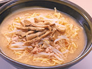 スープはあっさりした豚骨味噌味で、とろみがジワッとくる秘伝スープです。 それにモチモチした中太ちぢれ麺が絡む、癖になる味です。テレビ番組でも取り上げられた仙台の有名店です